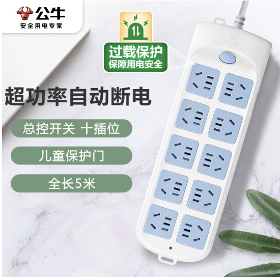 公牛 插座 插线板/插排/排插/接线板/拖线板 10位总控全长3米超功率保护