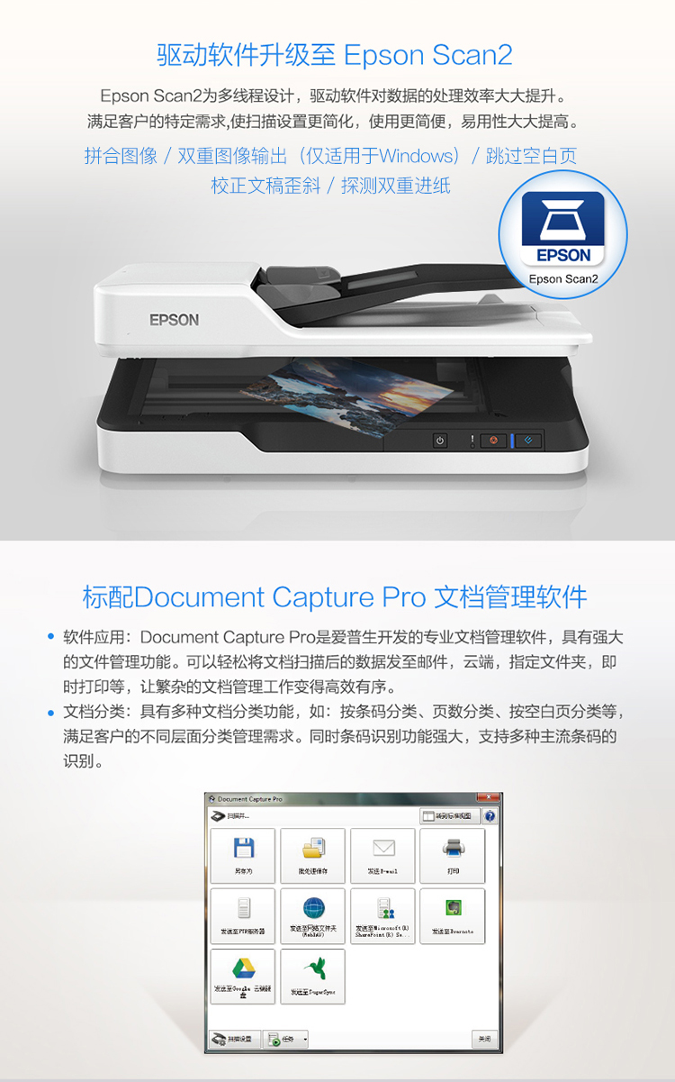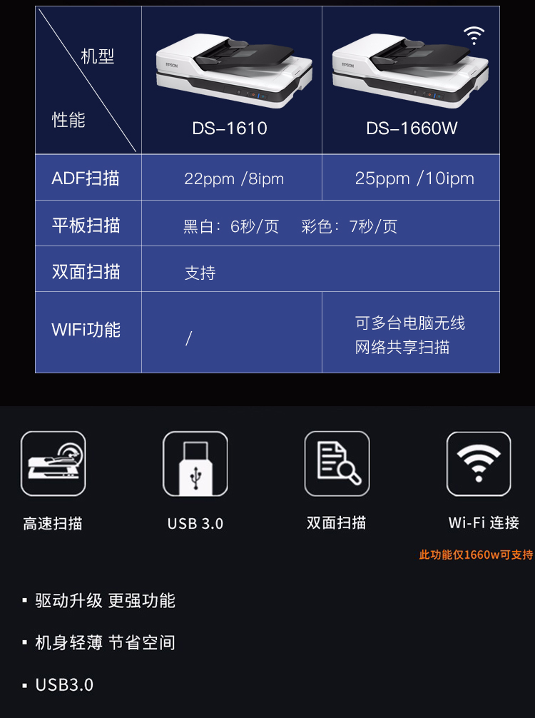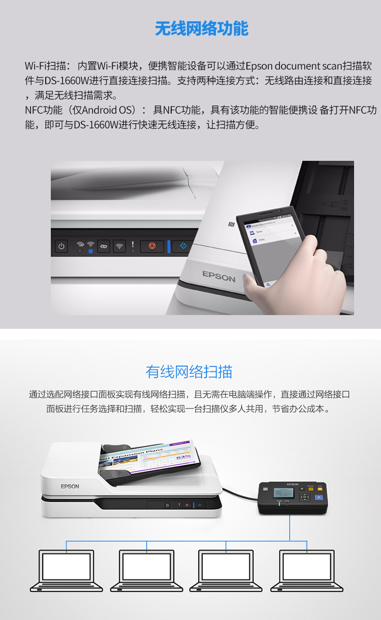 爱普生(EPSON) DS-1610 1660W A4 高速彩色文档扫描仪 自动进纸 DS-1610标配