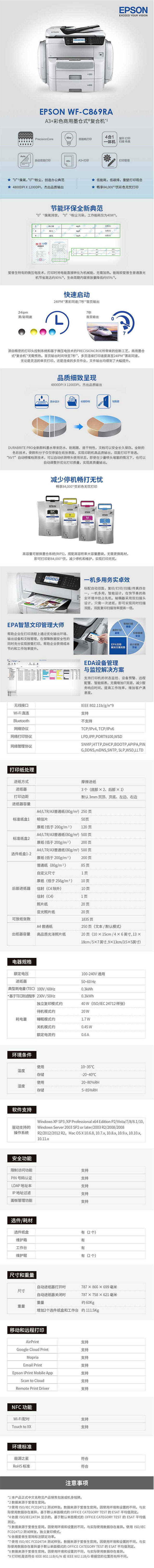 爱普生(EPSON)WF-C869Ra A3+彩色商用墨仓式 复合机