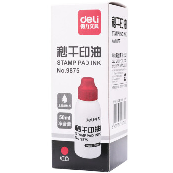 得力(deli)秒干印台/印油 大号快干印台 红色速干印泥财务用 办公用品 9875 秒干印油