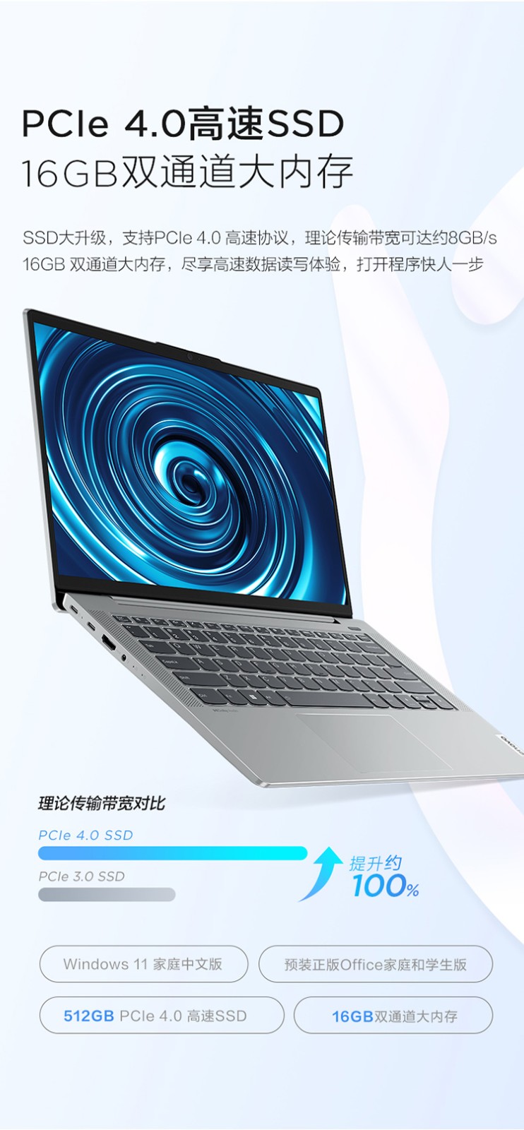 联想(Lenovo)小新Air14 (12代i5-1240P 16G 512G 100%sRGB高色域)银 便携式计算机